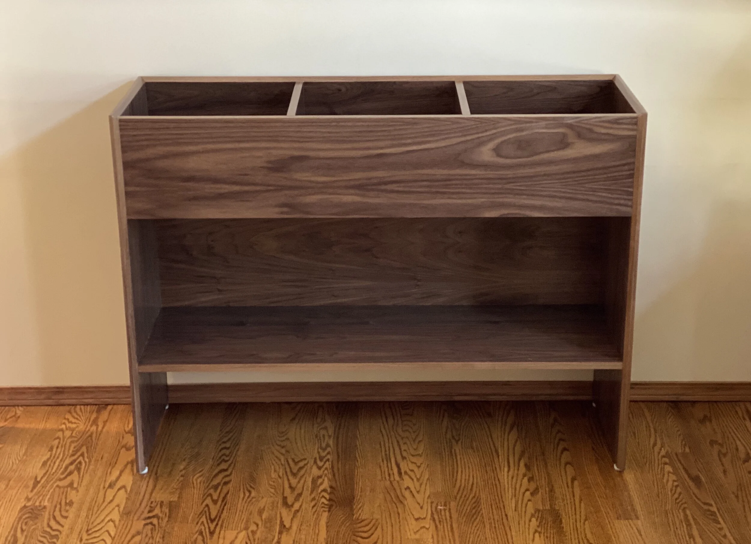 Flip style bins located on top of the unit with extra storage below. Hold all your records in one place with easy access.